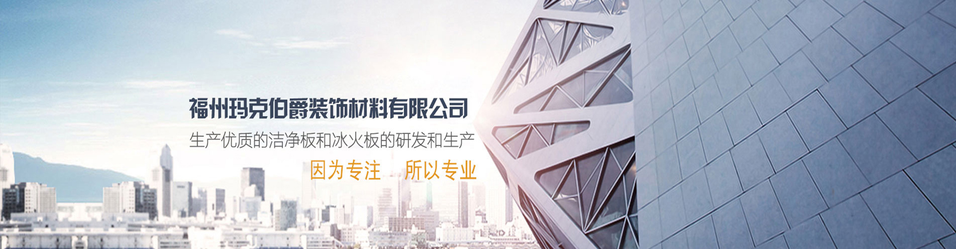 福州瑪克伯爵裝飾材料有限公司成立于2002年,是一家專(zhuān)業(yè)研發(fā)A級(jí)防火材料和生產(chǎn)內(nèi)外墻可替代裝飾材料的公司,主要價(jià)格生產(chǎn)各類(lèi)工程裝飾用品:冰火板、醫(yī)用抗菌板、保溫一體板、隧道板等,產(chǎn)品具有防火防水、綠色環(huán)保、無(wú)毒、無(wú)煙無(wú)排放、抗菌、A級(jí)防火等多項(xiàng)技術(shù)優(yōu)勢(shì)。